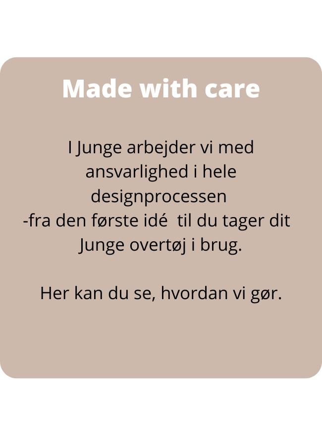 metervarer, lynlåse, knapper, foer, dun mv. af god kvalitet. Det betyder, at Junges overtøj er slidstærkt
